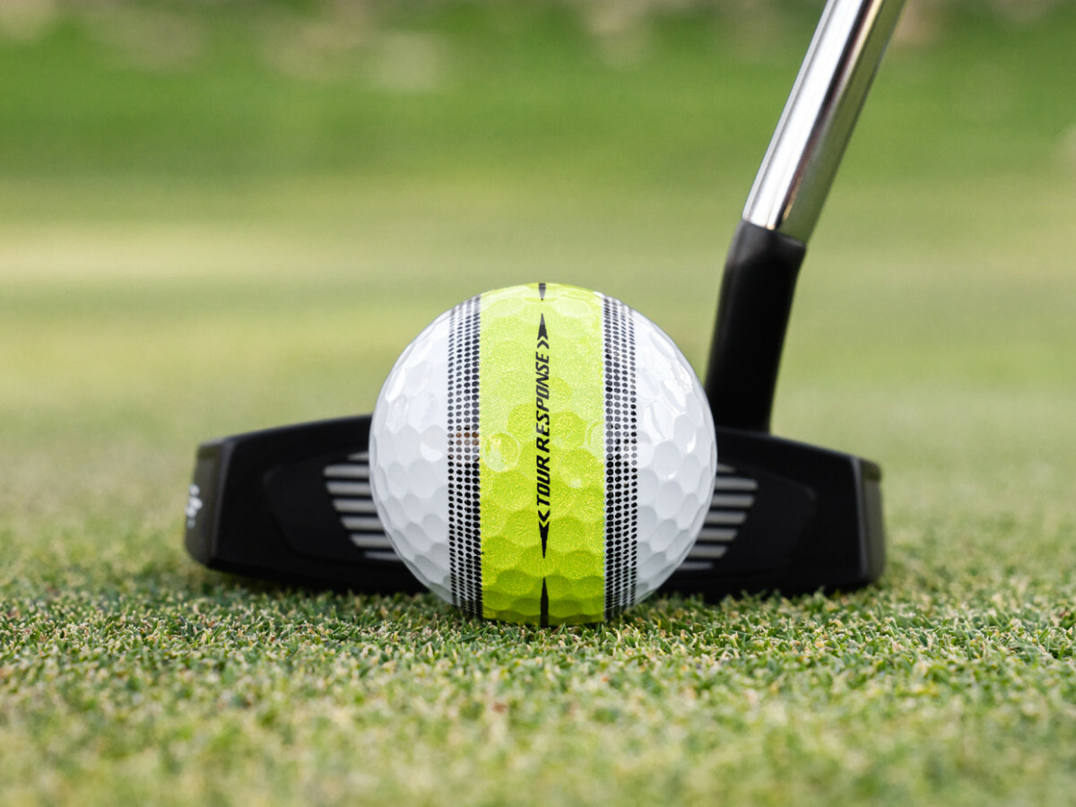 Tour Response Stripe 旨在通過 100% 氨基甲酸乙酯外層響應您的比賽,以增加果嶺側旋轉和比離聚物更好的手感。柔軟的材料有助於楔形凹槽在擊球上果嶺時更好地抓球,同時保持更高的耐用性。