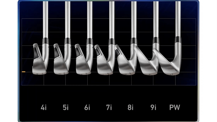 FLTD CG™ 策略性地將長鐵桿的重心 (CG) 定位在最低位置,並在整組鐵桿中逐漸移至更高位置。該設計使長鐵桿具有更好的發射能力和可玩性,並增強了得分球桿的控制力。