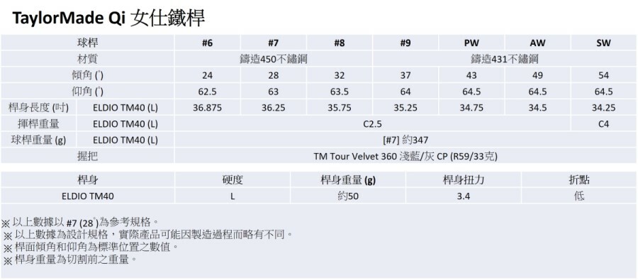 TaylorMade QI 女仕鐵桿組 6-PAW,共7支