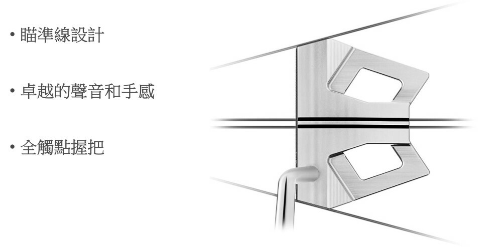 Phantom 9 經過全面重新設計,展現了全新的形狀,在瞄準、容錯性和手感方面都有所提升。在擊球前的擺放位置,從前緣一直到後方的兩條明顯的瞄準線引導視覺路徑,讓您擁有自信的擺放,既美觀又極具功能性。這款"環形配重"造型──重新配置的,有角度的翼狀設計──將較重的、精密加工的303不銹鋼與輕巧的6061鋁合金融合,以戰略方式將重量分佈到邊緣,以獲得平衡和更高的慣性力矩(MOI)。