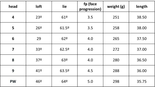 這款鐵桿採用革命性的桿頸和跟部設計,能讓桿頭重心位置移近趾部3公厘,離跟部35mm(七號鐵)。媲美木桿的更大「甜蜜點」改善了易打性,能讓偏離桿面中心的擊球變得更直且更遠。*(類似於TC 201–34公厘)