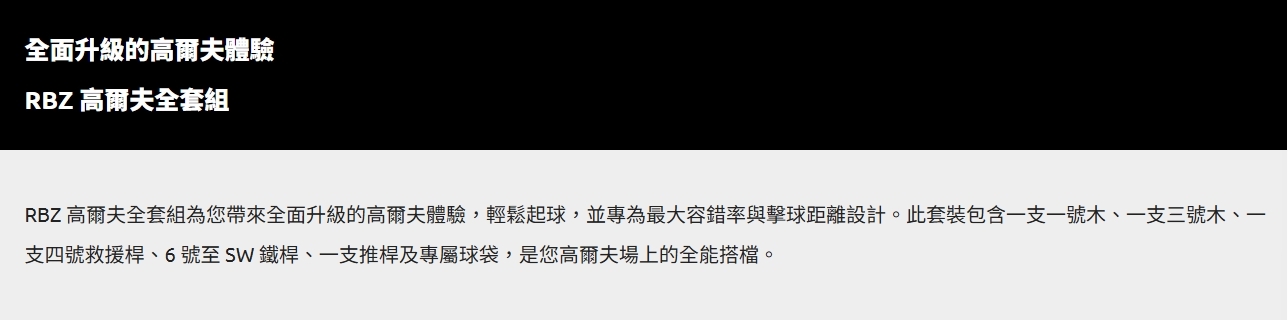 '25 TaylorMade RBZ 男用套桿#1,#3木+#U4鐵木+#6-P+S+1推+Bag(10支)