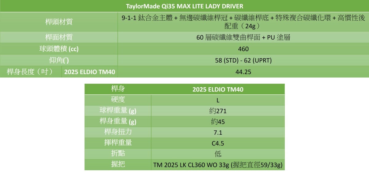 TaylorMade Qi35 Max Lite 女仕一號木桿
