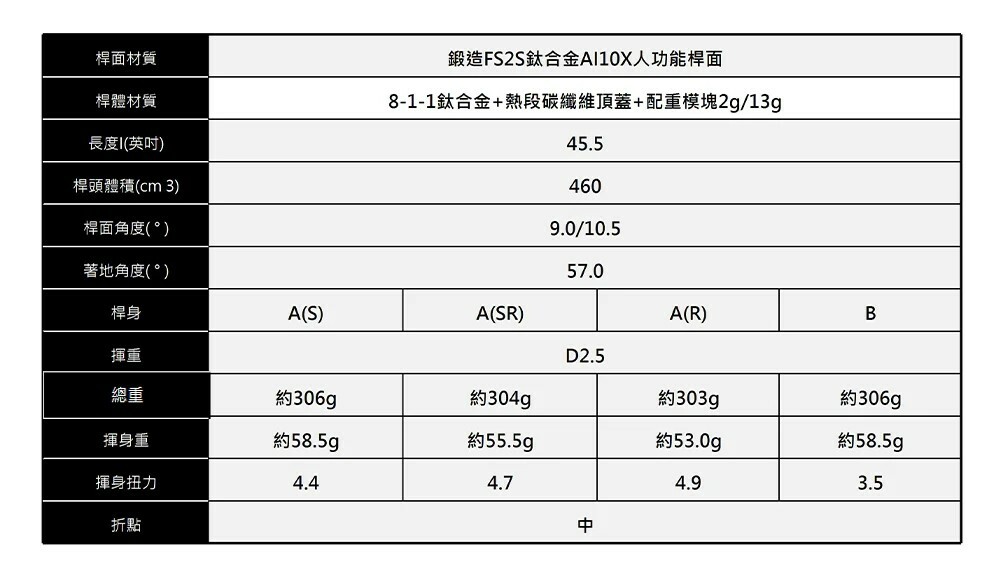 ● ELYTE X 發球木桿使用了超高MOI(慣性力矩)設計,低重心使球起飛更加容易。整體配重為小左曲彈道設定。