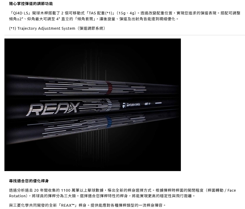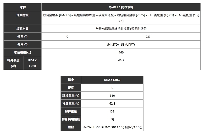 '26 TaylorMade Qi4D LS 一號木桿 ,碳身REAX 60 Low Rotation White(日規)
