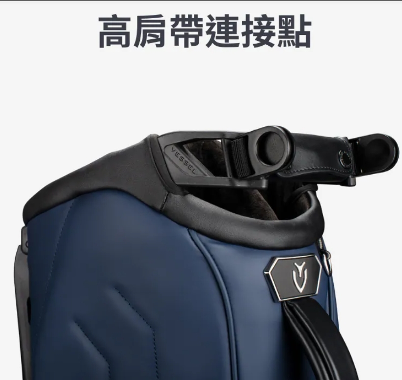 PLAYER系列獲獎眾多,V延續了前述優勢發展出更佳極致的攜帶體驗,從貴重物品口袋到飲料隔間袋,每個口袋都經過精心設計,以提球場便利性。PLAYER V 採用 VESSEL 的專利底座和雙肩背帶技術,以實現最大的平衡和卓越的穩定性。高肩帶連接點達成更進一步的平衡,並防止包袋內的球桿掉落,一個關鍵功能升級是增加了一個可穿越球袋保護套的通道,以增加對球袋的保護,Player V 使用特製拉片並加強細節上的規劃如鑰匙扣和卡片放置袋,展示了VESSEL對細節的關注,將球袋發揮出最佳功能。