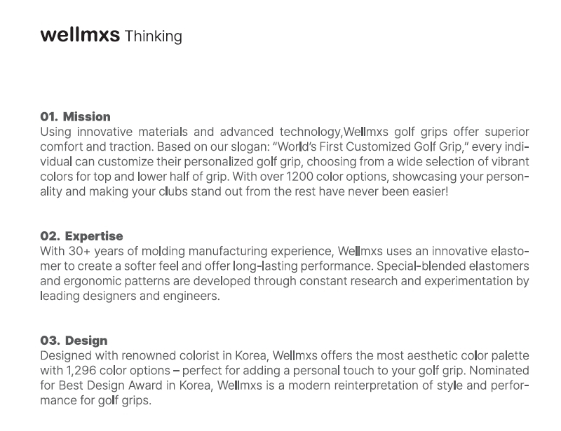 Wellmxs grips 不斷研究和開發,以提供最佳揮杆和一致的抓地力.